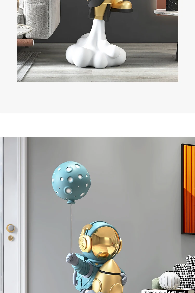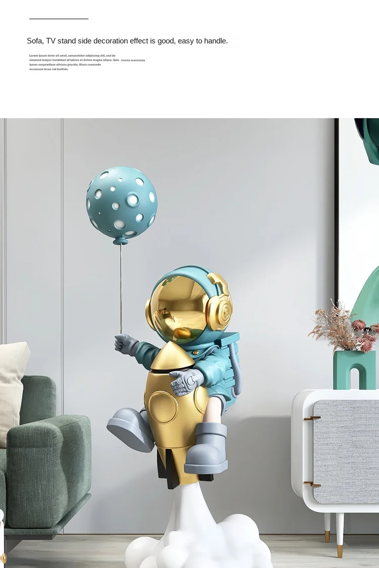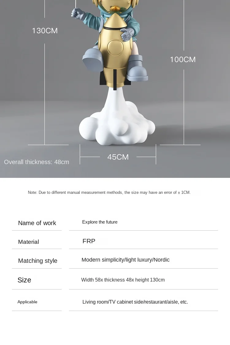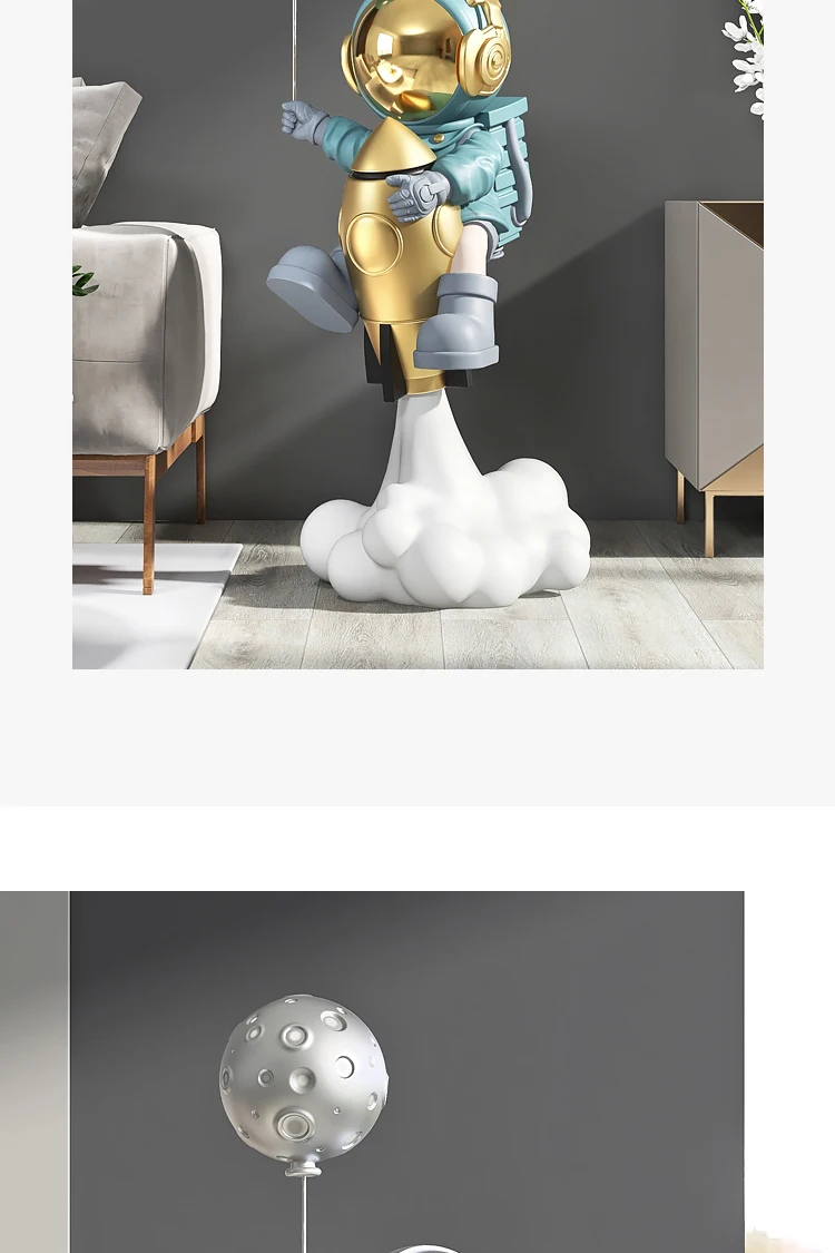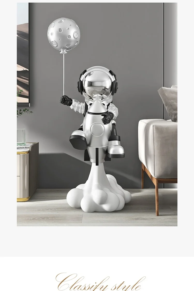 Impress your guests with this magnificent 130cm Rocket Astronaut FRP Statue. This spectacular statue will make any space look amazing at first glance. It is made of fiber-reinforced plastic and has perfect details that you can't see in the photos.