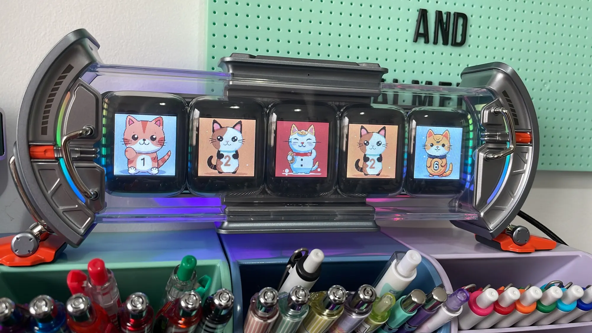 This Pixel art display consists of 5 full-color LCD displays. The IPS screens can display up to 128*128 pixel art static pictures and gifs.