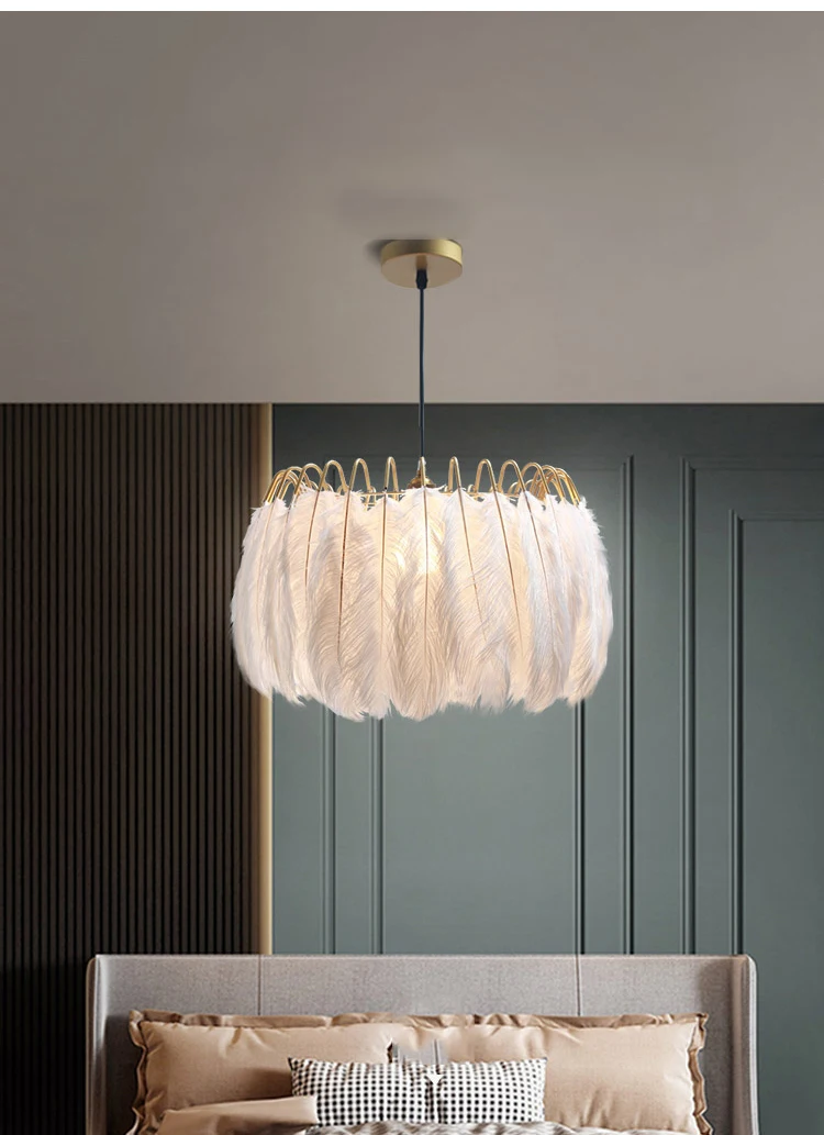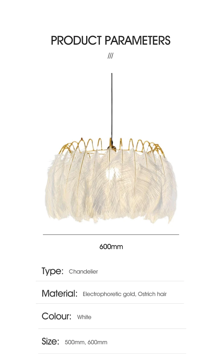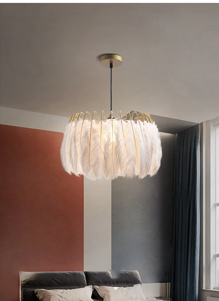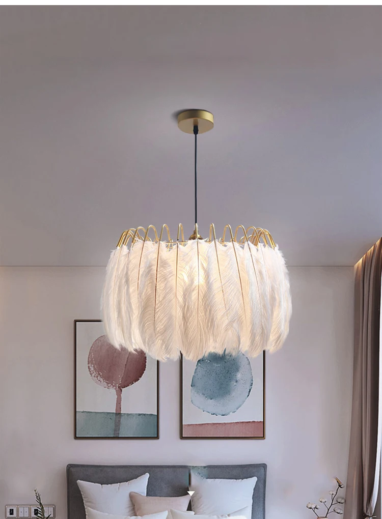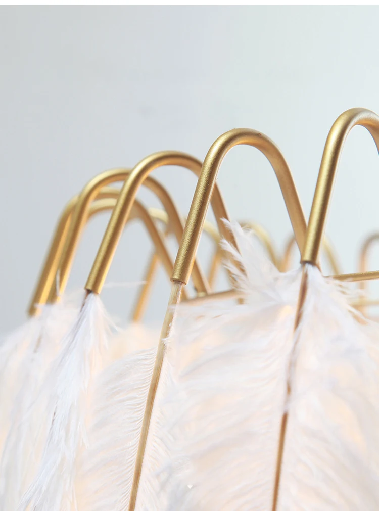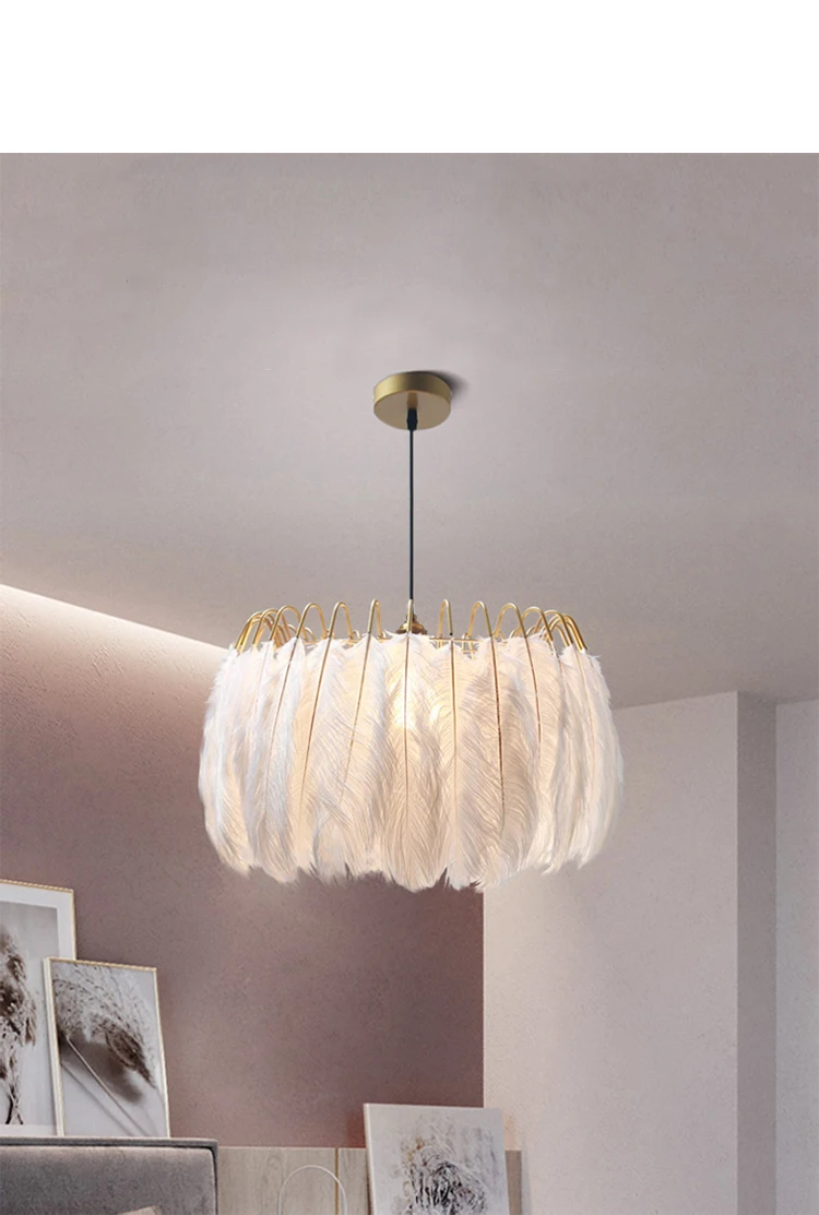 Illuminate your space with elegance and romance using this stunning Romantic Modern Feather Chandelier Lamp. Crafted with a modern design, this chandelier features delicate feathers that create a soft and ethereal ambiance in any room. The combination of the sleek metal frame and the natural beauty of the feathers adds a touch of sophistication to your decor.